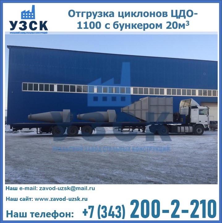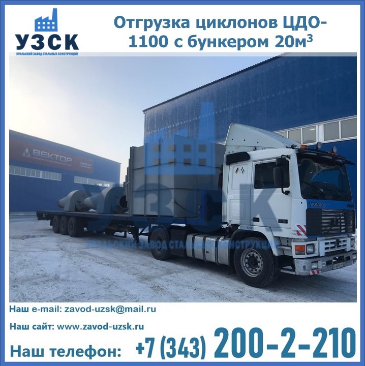 Циклоны ЦДО-1100 с бункером на 20 кубов были отгружены в декабре 2018 года в г. Новосибирск Подольск.