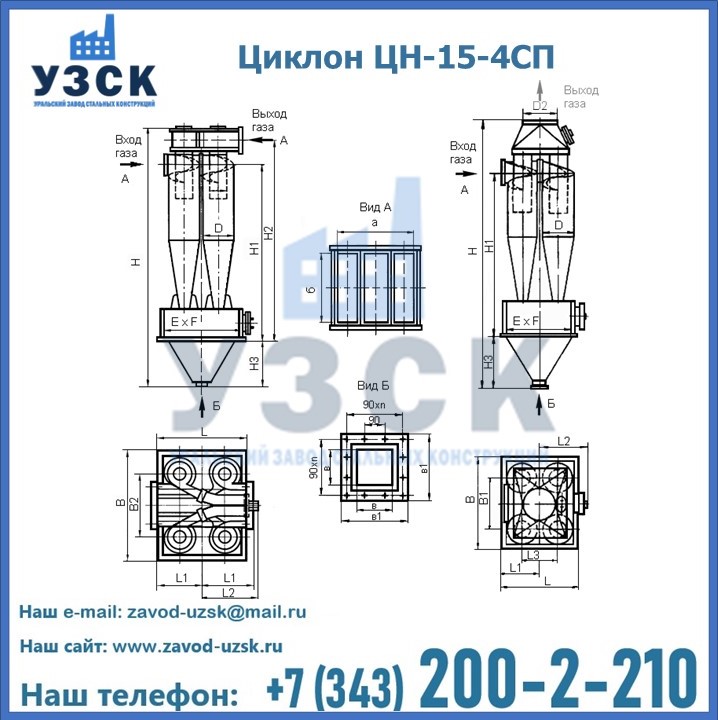 Завод «УЗСК» в Подольске предлагает большой выбор циклонов ЦН-15-900×4СП и прочих устройств, полностью укомплектованных и готовых к эксплуатации. Мы гарантируем соответствие оборудования всем требованиям ГОСТ и ТУ, износостойкость и высокую производительность предлагаемого оборудования. Уральский Завод Стальных Конструкций изготавливает и продает надежное, эффективное и производительное оборудование, имеющее длительную гарантию и большой эксплуатационный ресурс. Если требуется изготовить циклон нестандартных размеров, то такой вариант выполнения заказа тоже предусмотрен, так как предприятие имеет собственные производственные площади и надежных поставщиков. На все поставляемое или производимое оборудование имеются чертежи и прочая техническая документация. Заказать и купить циклоны или прочее оборудование высокого качества и по доступной цене можно через наш сайт или по указанному в разделе «Контакты» телефону.