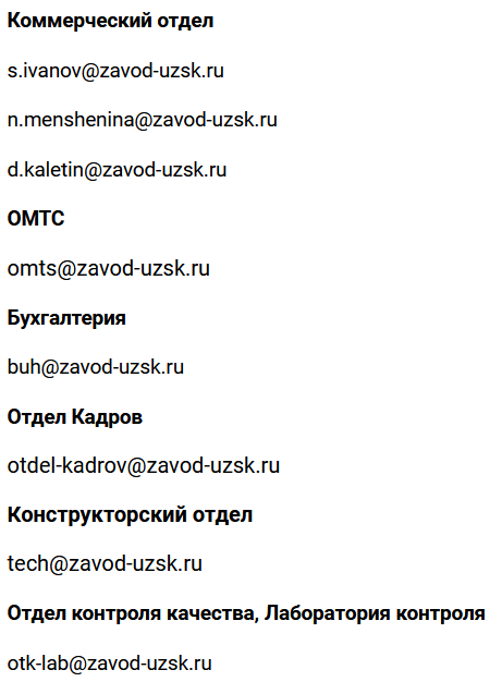 EMAIL : podolsk@zavod-uzsk.ru