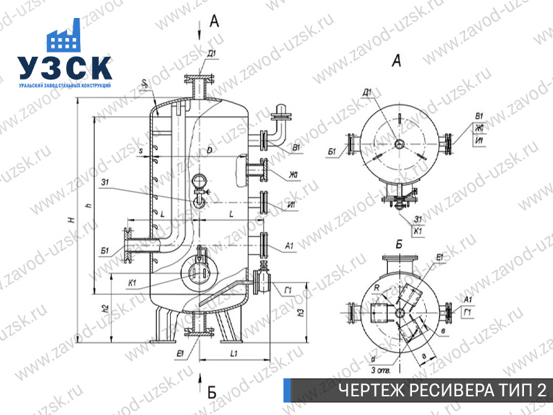 Ресивер высокого давления — это специализированное оборудование, разработанное для накопления и хранения воздуха или газа под давлением, а также для подачи рабочей среды на технологические линии предприятий. Завод «УЗСК» осуществляет изготовление газовых и воздушных ресиверов (воздухосборников) любой сложности. Мы предлагаем самые выгодные цены на ресиверы из углеродистой стали, ресиверы из легированной стали и ресиверы из нержавеющей стали в Подольске.