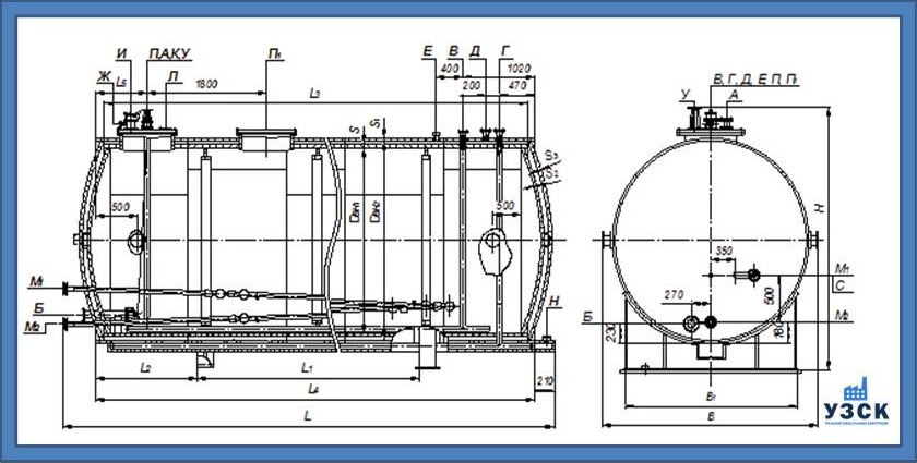 Технические характеристики наземных горизонтальных резервуаров