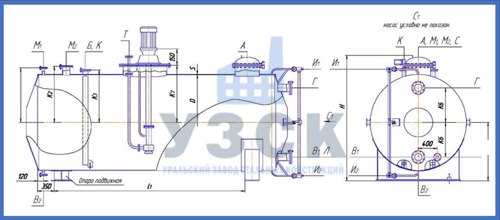 Главная > Продукция > Резервуары горизонтальные стальные РГС > Горизонтальные аппараты с коническими неотбортованными днищами ГКК